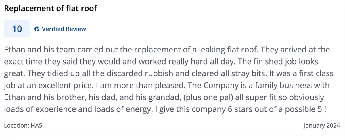 Any leaks or issues arising from components or areas not directly related to the flat roof felting are not covered by this guarantee. This includes, but is not limited to, any pre-existing roofing issues, structural problems, or damage caused by external factors or third-party interference.